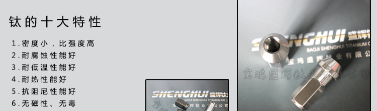 寶雞盛輝鈦業有限公司是一家主要從事鈦及鈦合金棒,鈦環,鈦法蘭及鈦合金板材的高新技術企業,公司提供鈦環,鈦合金棒批發,鈦環的生產工藝服務,以人為本,質量取勝為宗旨:18791863990,18740375975