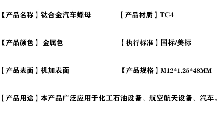 鈦合金TC4汽車螺母