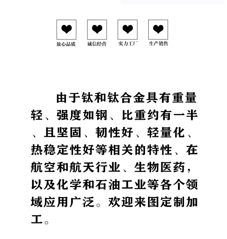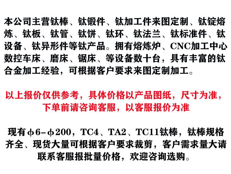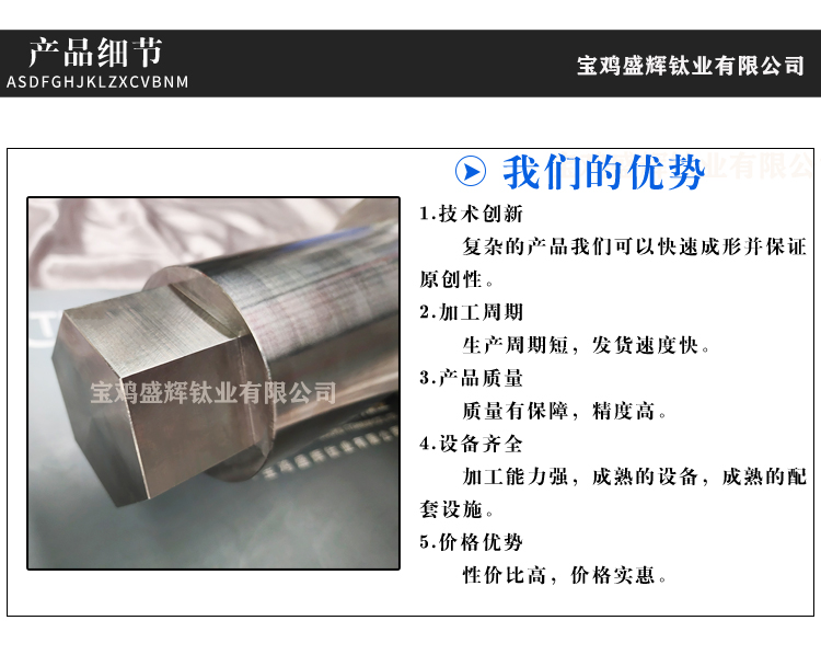 寶雞盛輝鈦業有限公司是一家主要從事鈦及鈦合金棒,鈦環,鈦法蘭及鈦合金板材的高新技術企業,公司提供鈦環,鈦合金棒批發,鈦環的生產工藝服務,以人為本,質量取勝為宗旨:18791863990,18740375975