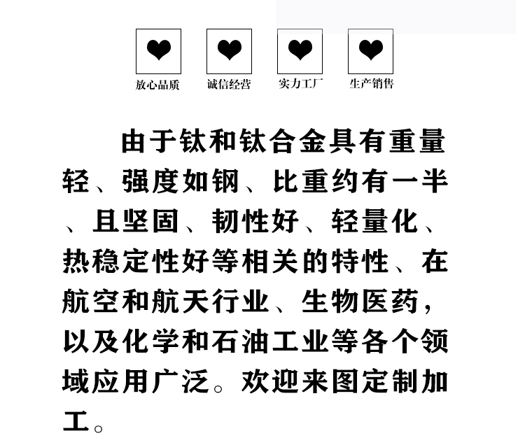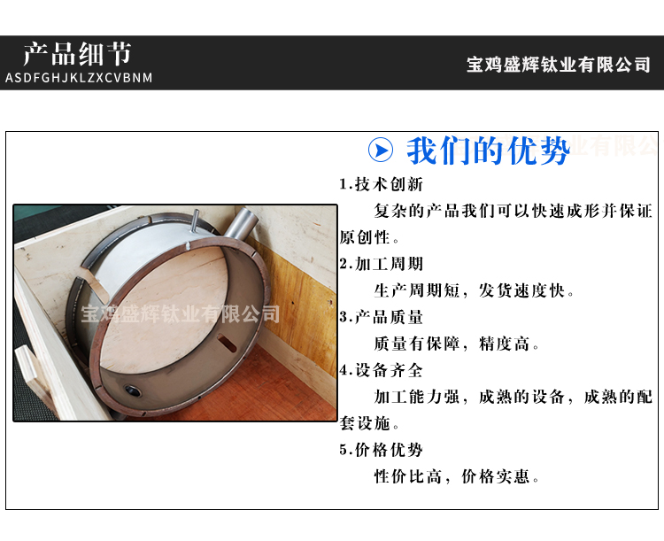 寶雞盛輝鈦業有限公司是一家主要從事鈦及鈦合金棒,鈦環,鈦法蘭及鈦合金板材的高新技術企業,公司提供鈦環,鈦合金棒批發,鈦環的生產工藝服務,以人為本,質量取勝為宗旨:18791863990,18740375975
