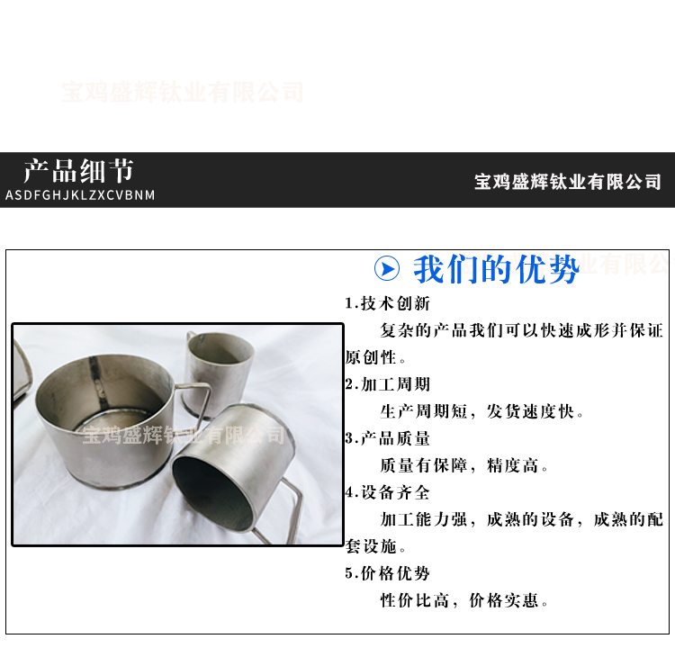 寶雞盛輝鈦業(yè)有限公司是一家主要從事鈦及鈦合金棒,鈦環(huán),鈦法蘭及鈦合金板材的高新技術(shù)企業(yè),公司提供鈦環(huán),鈦合金棒批發(fā),鈦環(huán)的生產(chǎn)工藝服務,以人為本,質(zhì)量取勝為宗旨:18791863990,18740375975