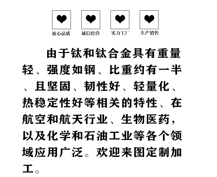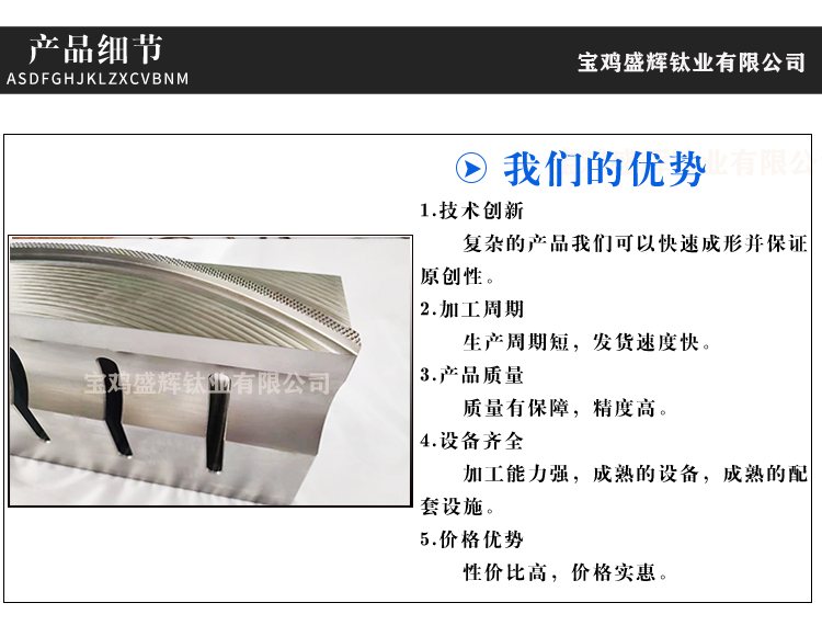 寶雞盛輝鈦業有限公司是一家主要從事鈦及鈦合金棒,鈦環,鈦法蘭及鈦合金板材的高新技術企業,公司提供鈦環,鈦合金棒批發,鈦環的生產工藝服務,以人為本,質量取勝為宗旨:18791863990,18740375975