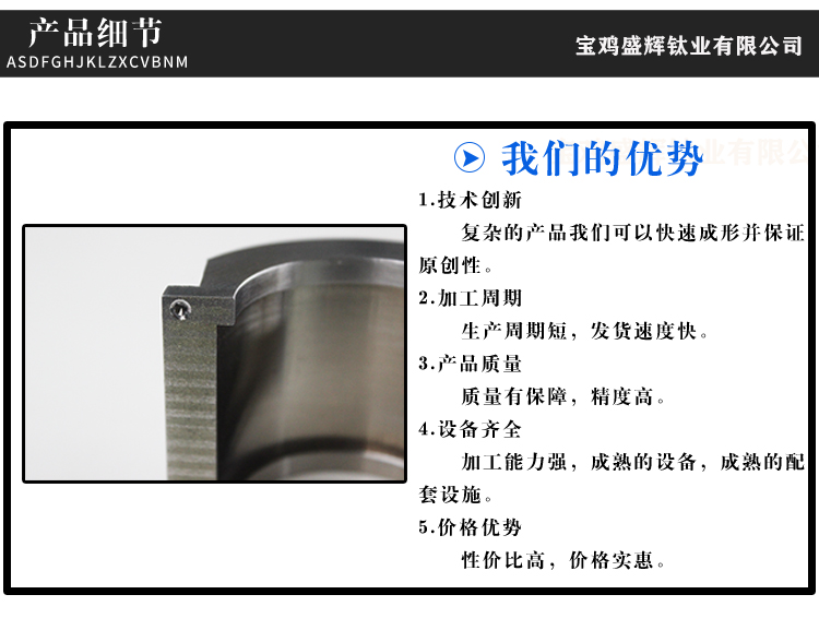寶雞盛輝鈦業有限公司是一家主要從事鈦及鈦合金棒,鈦環,鈦法蘭及鈦合金板材的高新技術企業,公司提供鈦環,鈦合金棒批發,鈦環的生產工藝服務,以人為本,質量取勝為宗旨:18791863990,18740375975