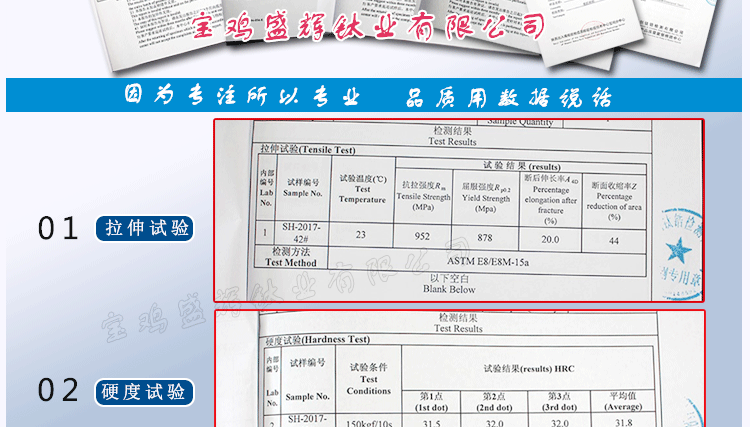 為了幫助客戶辨別鈦商品的品質優劣,確保鈦產品的來源渠道正規,本公司可提供第三方檢測機構證明書。客戶可以清楚的知道商品的的名稱、材質、批號、成分等詳細信息。確保鈦產品的優良品質。