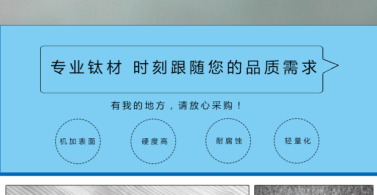 從細節出發,站在專業的角度,始終如一堅守品質的最終使用價值,產品和服務同時送達是盛輝鈦業對客戶的承諾。寶雞盛輝,將以不變的摯誠,用心聆聽,貼心關懷,以至全至尊的服務,與新老客戶攜手共贏!