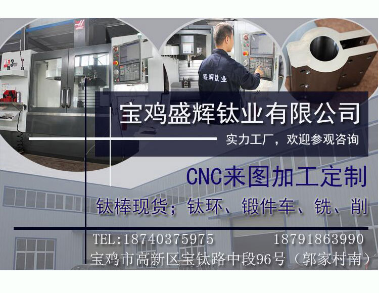 寶雞盛輝鈦業有限公司是一家主要從事鈦及鈦合金棒,鈦環,鈦法蘭及鈦合金板材的高新技術企業,公司提供鈦環,鈦合金棒批發,鈦環的生產工藝服務,以人為本,質量取勝為宗旨:18791863990,18740375975